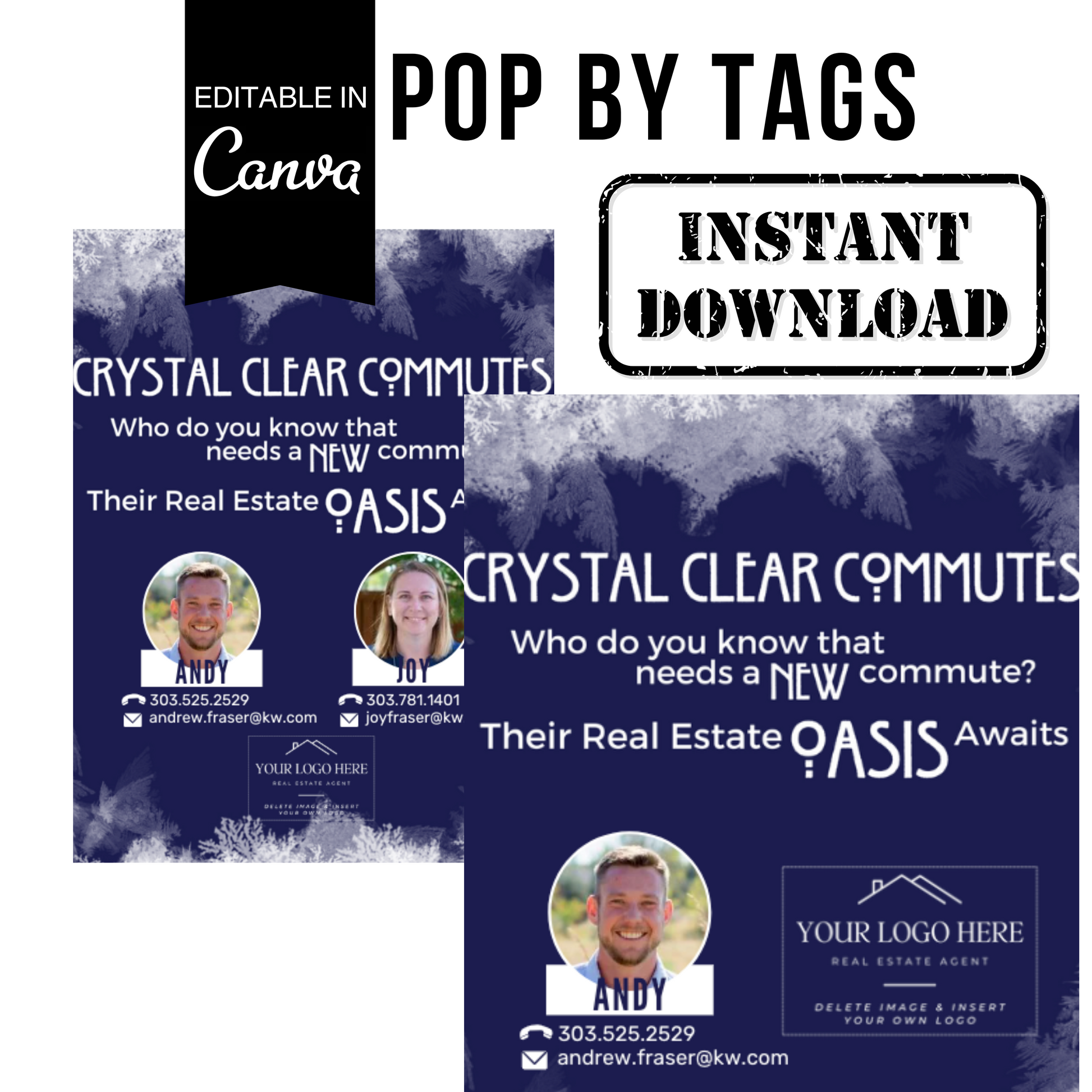 You will receive a link to the design in Canva and instructions to personalize and make it your own. The link includes three templates: team, single agent photo, and agent with no photo.